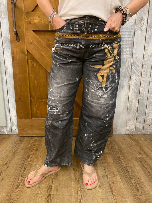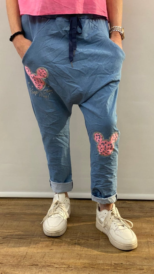 Ballon Jeans Damen grau mit Taschen & einzigartigen Motiven Größe S-M-L