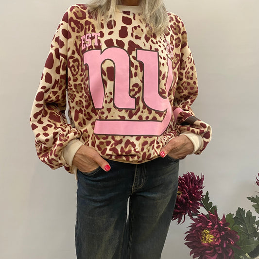 Damen Sweatshirt Leo-Look Aufdruck Einheitsgröße 36-42 80% Baumwolle