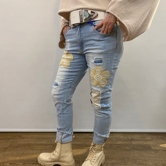Ballon Jeans Damen grau mit Taschen & einzigartigen Motiven Größe S-M-L