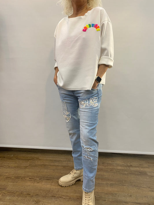 Jeans "Moni" in weiss mit Spitzeneinsatz